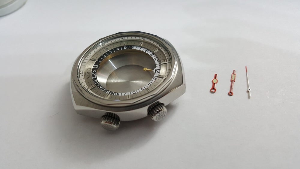 FOR SALE IS A EDOX GEOSCOPE STAINLESS STEEL REPLACEMENT GENTS WATCH CASE SET.MINT.